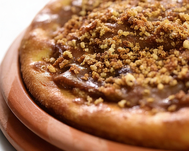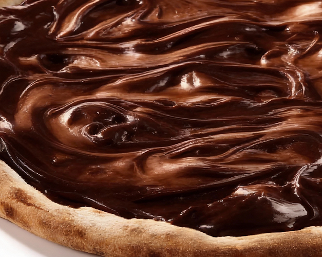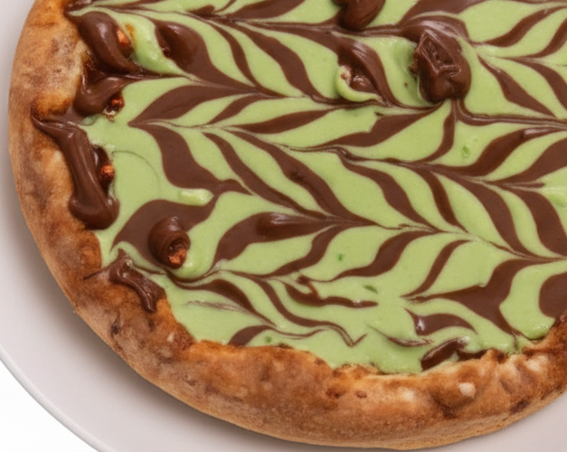 Pizza doce com creme de pistache e toque especial de Nutella.