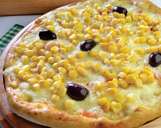 Catupiry original, frango desfiado, milho, molho de tomate natural, azeitona preta e orégano.