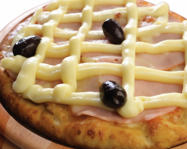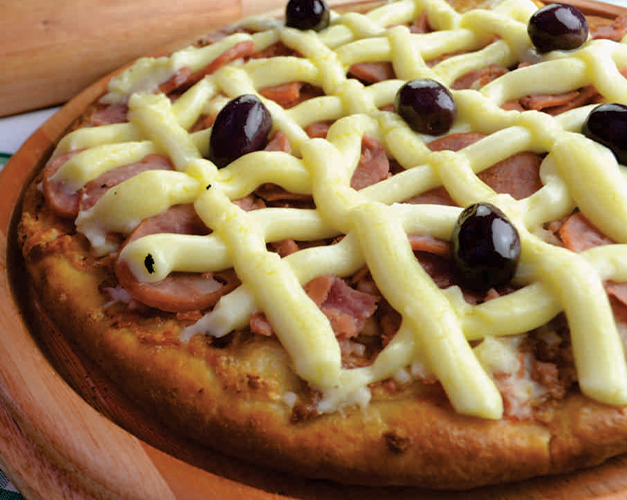 Catupiry original, bacon, molho de tomate natural, azeitona preta e orégano.