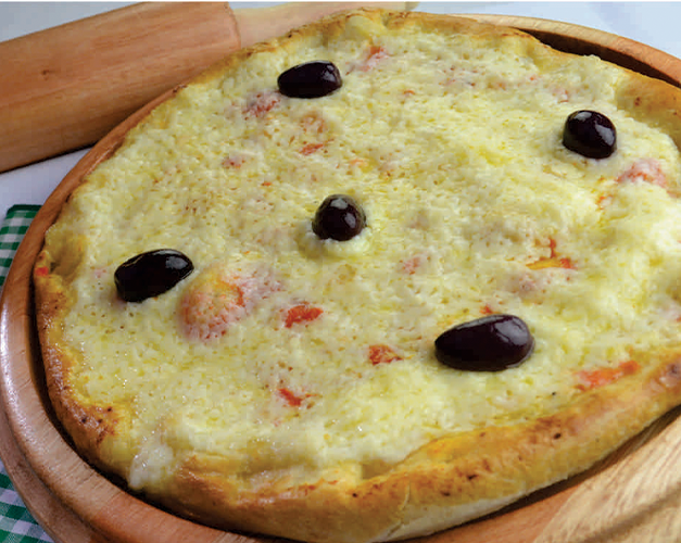 Catupiry original, molho de tomate natural, azeitona preta e orégano.